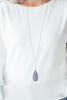 Bordered in a ring of dainty white rhinestones, an imperfect Very Peri gemstone twinkles along a dainty silver chain. Featuring a faceted shimmer, the dainty pendant creates a treasured pendant below the collar. Features an adjustable clasp closure.