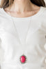 Featuring smooth, faceted, and polished finishes, a mismatched assortment of classic silver beads, sparkly crystal-like accents, silver ovals, and oversized pink beads connect with sections of silver chain across the chest for a flirtatious splash of color. Features an adjustable clasp closure.