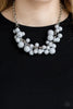 Smoky gems and polished hematite in a variety of inspired shapes gather together into scattered clusters that connect across the collar. The edgy teardrop, marquise, and round shapes attach to a dainty silver chain, creating a fragmented masterpiece. Features an adjustable clasp closure.