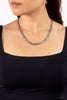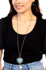 Threaded along an invisible wire, black wooden beads, gunmetal beads, and black pebbles and beads haphazardly coalesce down the neckline for an earthy finish. Features an adjustable clasp closure. As the stone elements in this piece are natural, some color variation is normal.