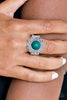Dotted in shimmery studs, a flame-like silver frame folds across the finger. Glittery green rhinestones are sprinkled down the center for a sparkling finish. Features a stretchy band for a flexible fit.