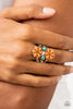 Layers of spun, studded, textured, and chain-like silver accents stack into an oversized ornate frame atop the finger. Chiseled into a tranquil teardrop, a refreshing orange stone adorns the center of the frame for a colorfully earthy finish. Features a stretchy band for a flexible fit.