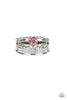 Featuring airy cut-out textures, antiqued silver petals gather around a glowing pink rhinestone center for a whimsical look. Features a stretchy band for a flexible fit. Sold as one individual ring.