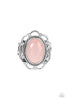 Antiqued silver texture combines with rope and studded accents to create a swirling frame. A pink asymmetrical teardrop stone nestles inside, culminating in an artisan-inspired ensemble atop the finger. Features a stretchy band for a flexible fit.
