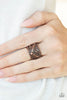 Featuring round and teardrop shapes, a refreshing collection of turquoise stones gather around a leafy copper accent, creating a whimsical center atop the finger. Features a stretchy band for a flexible fit.
