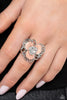 Enhanced with a bubbly blue pearl centerpiece, ribbons of white rhinestone encrusted silver bands twirl across the finger for a timeless twist. Features a dainty stretchy band for a flexible fit.